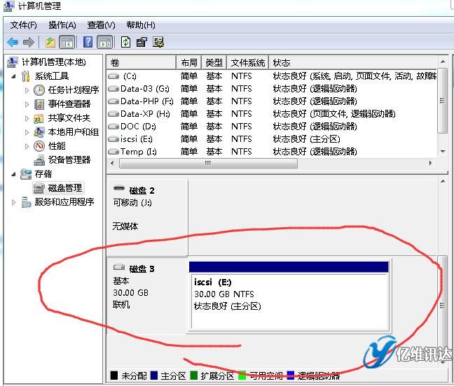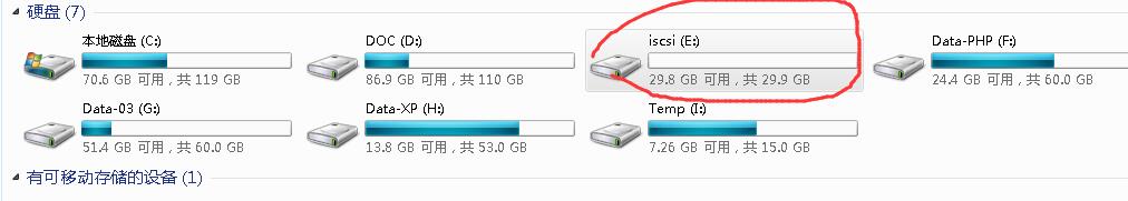 然后,在客戶端(以windows 7為例),看一下,如何連接ISCSI,請訪問windows server 2008R2部署ISCSI》。