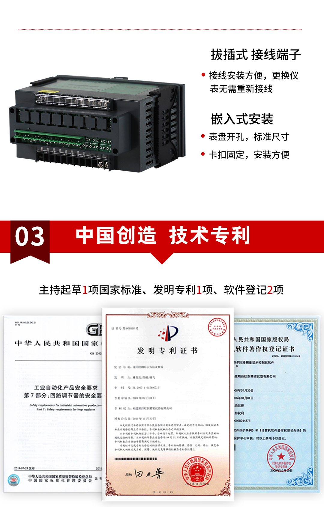 虹潤公司是專業(yè)生產(chǎn)多路溫度巡檢儀的國家專精特新“小巨人”企業(yè),生產(chǎn)的四回路測量顯示控制儀,具有四路同屏顯示,全切換信號輸入,數(shù)學(xué)運算功能,多種輸出類型,RS485/RS232通訊等特點。產(chǎn)品獲得巡回檢測顯示方法及裝置、儀表殼體等2項國家發(fā)明專利,主持起草工業(yè)過程控制系統(tǒng)用模擬輸入兩位或多位輸出儀表、物聯(lián)網(wǎng)智能溫度儀表通用技術(shù)條件等2項國家標(biāo)準(zhǔn),以及通信系統(tǒng)多通道數(shù)據(jù)采集控制終端規(guī)范軍用標(biāo)準(zhǔn),參與國際5G標(biāo)準(zhǔn)制定,取得四回路測量顯示控制儀等3項相關(guān)軟件著作權(quán)。產(chǎn)品廣泛應(yīng)用于電力、石化、冶金、制藥、水處理、機械配套等各種工業(yè)現(xiàn)場。